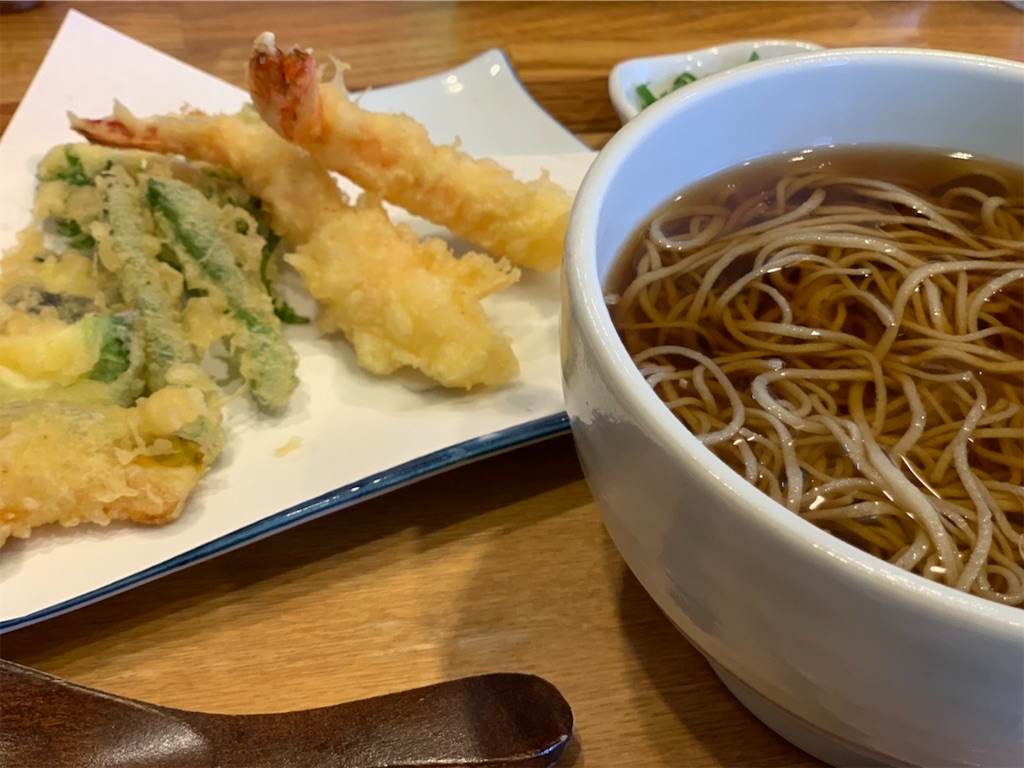 天ぷらそば=そばの上に天ぷらも乗ってるイメージをしていた私達でしたが、蕎麦と天ぷらが別々に盛られていて感動しました!